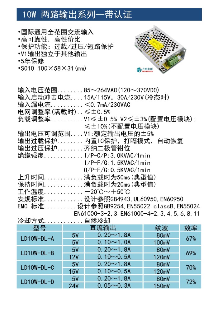 力德10W雙組輸出開關(guān)電源
